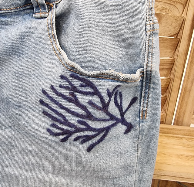 Brodé à la main avec la laine feutrée à l'aiguille, devant et poche dos